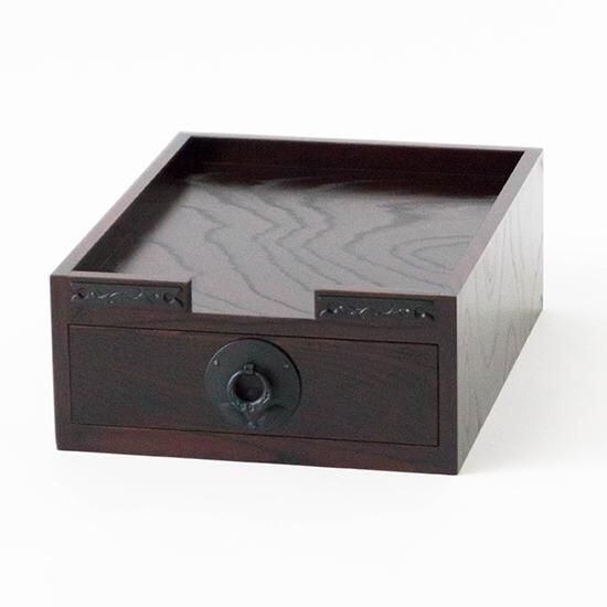 抽斗一つの上にトレイがついたシンプルな卓上小家具です。