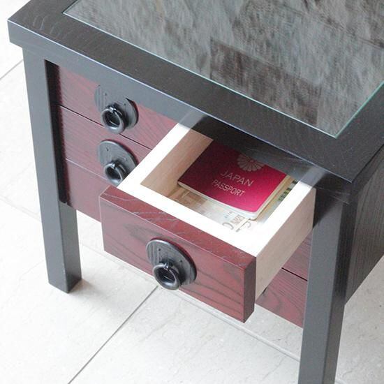 サイドテーブル赤黒<ガラス有>抽斗6杯 KC504
