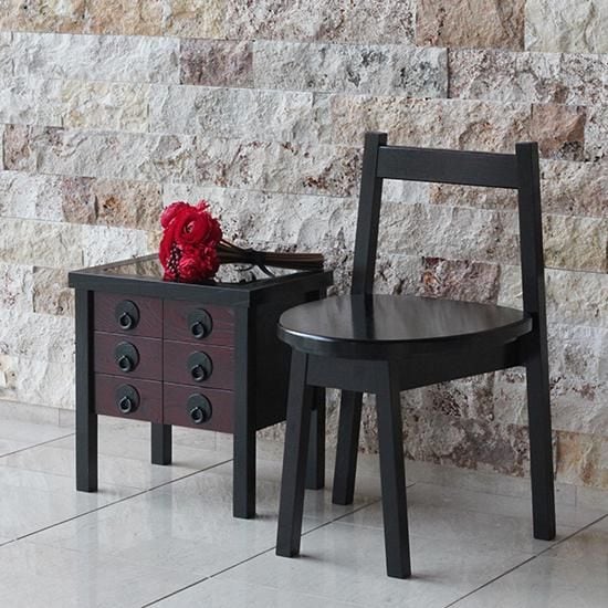 サイドテーブル赤黒<ガラス有>抽斗4杯 KC502
