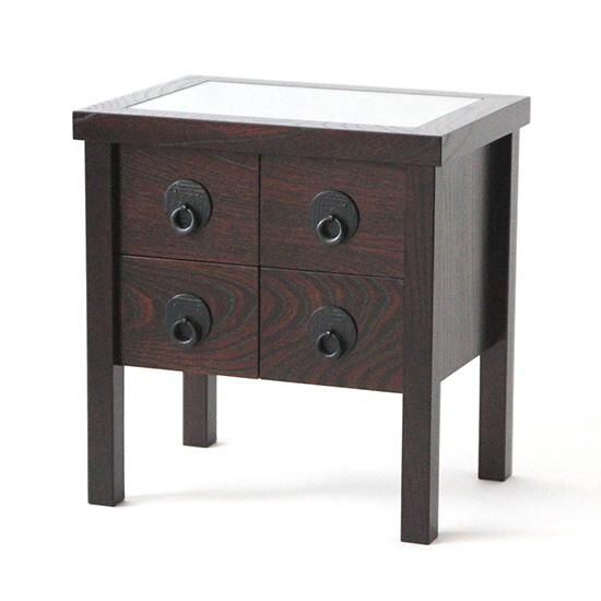 サイドテーブル<ガラス有>抽斗4杯 KC501